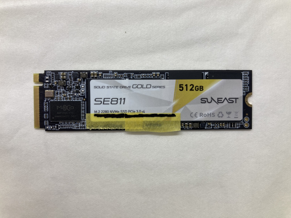 容量が512GBって書いてありますね。(製造番号やらなんやら書いてあったのでマスキングテープして黒塗りしてます)
