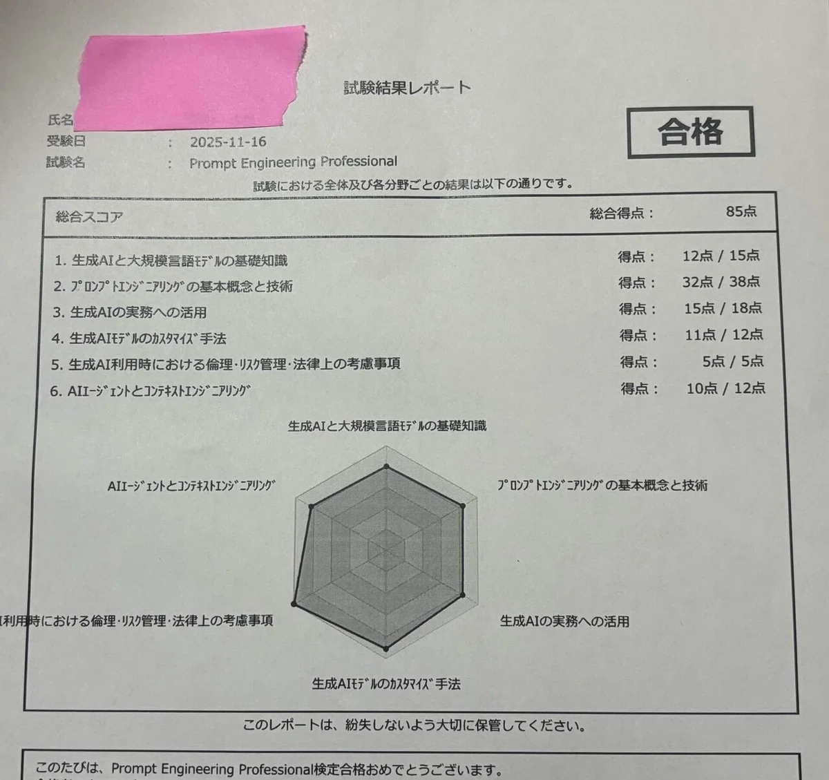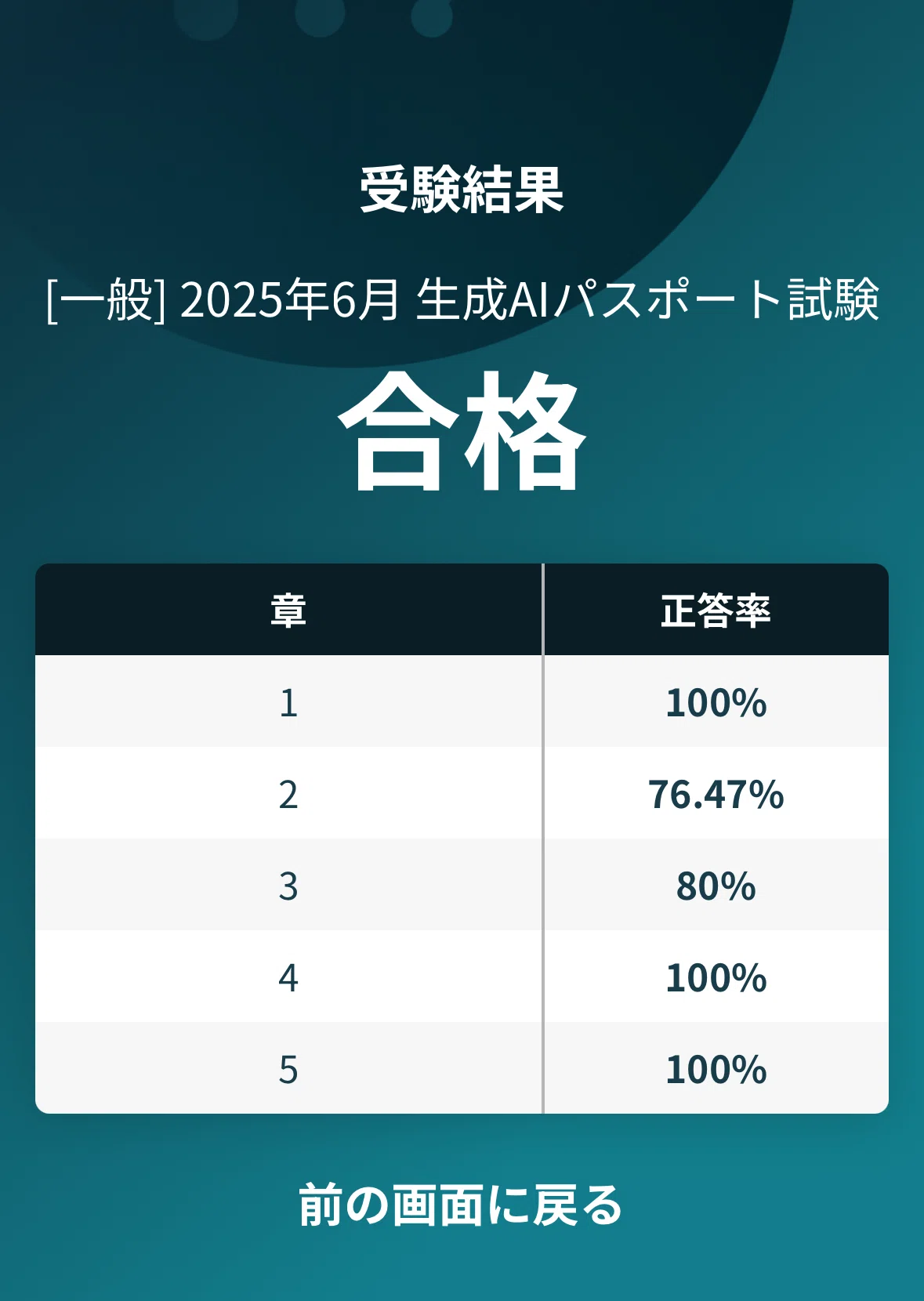 その結果、なんと2週間で知識ゼロから生成AIパスポートに合格しました。