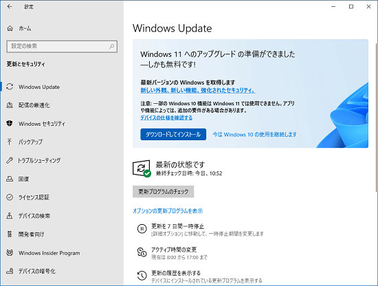 [ Windows Update画面でWindows 11が表示されている状態]