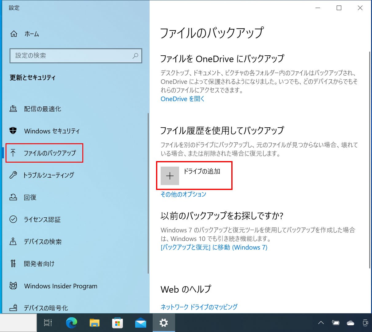 [Windowsバックアップ設定画面]