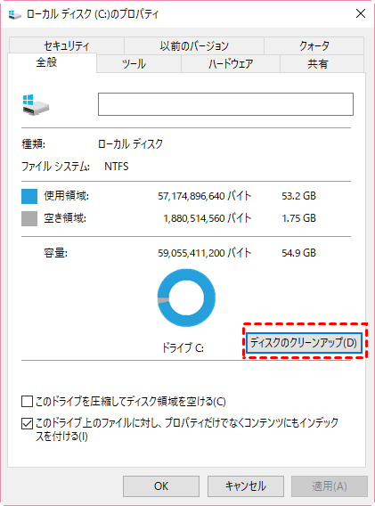- 一時ファイルの削除(ディスククリーンアップ使用)