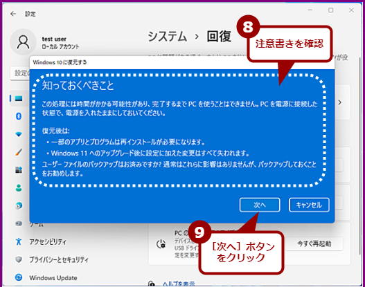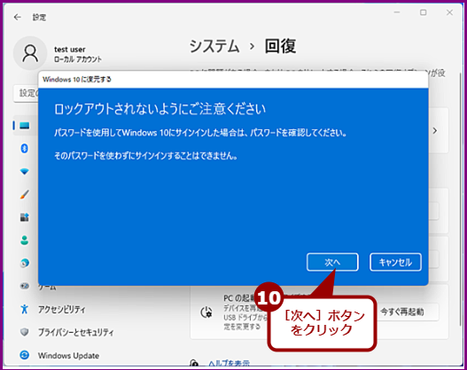 Windows 11にアップグレード後10日間は、簡単にWindows 10に戻すことができます。