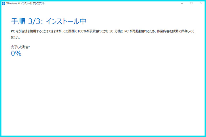 Windows 11へのアップグレードには通常30分から1時間程度かかります。PCのスペックやインターネット速度によってはそれ以上かかる場合もあります。
