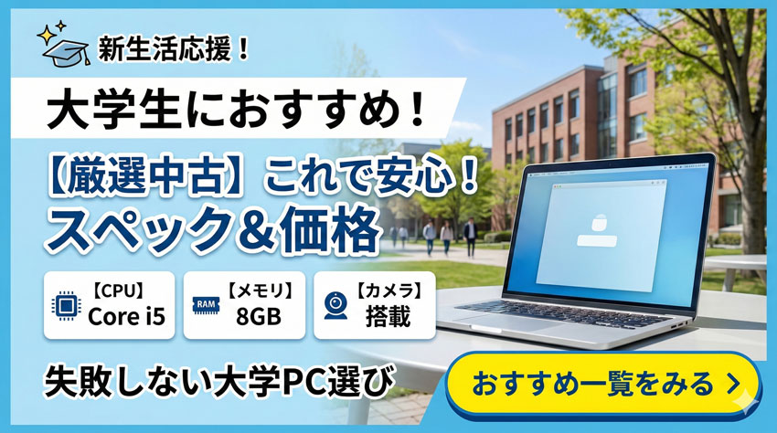パソコンは大学生活の必需品ですが、必ずしも「高額な新品」である必要はありません。 自分に必要なスペックを見極め、コスパの良い中古パソコンを選ぶことは、社会に出てからも役立つ「賢い消費者」としての第一歩です。