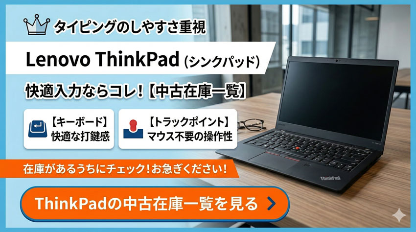 ▼ 在庫があるうちにチェック! > ThinkPadの中古在庫一覧を見る