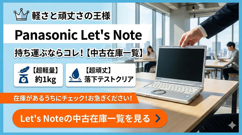 ▼ 在庫があるうちにチェック! > Let's Noteの中古在庫一覧を見る