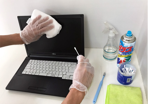 「でも、誰が使ったか分からないパソコンは衛生的にちょっと…」 そんな不安を解消するために、当店では徹底的なクリーニングを行っています。