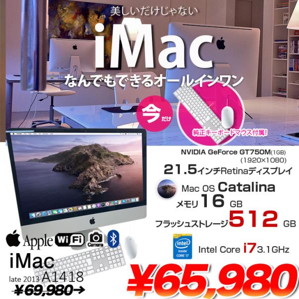 【中古パソコン】Apple iMac ME087J/A Late 2013 A1418 21.5インチ一体型 カメラ 今だけ!純正キーボード&マウス付 [Corei7 4770S 3.1GHz メモリ16GB SSD500GB 無線 BT OS10.15.7 ] :良品