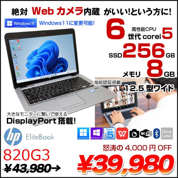 【中古パソコン 今だけメモリ倍増+マウス】HP EliteBook 820G3 中古 ノート Office 選べる Win11 or Win10 [Core i5 6300U 16GB SSD256GB 無線 カメラ 12.5型] :良品