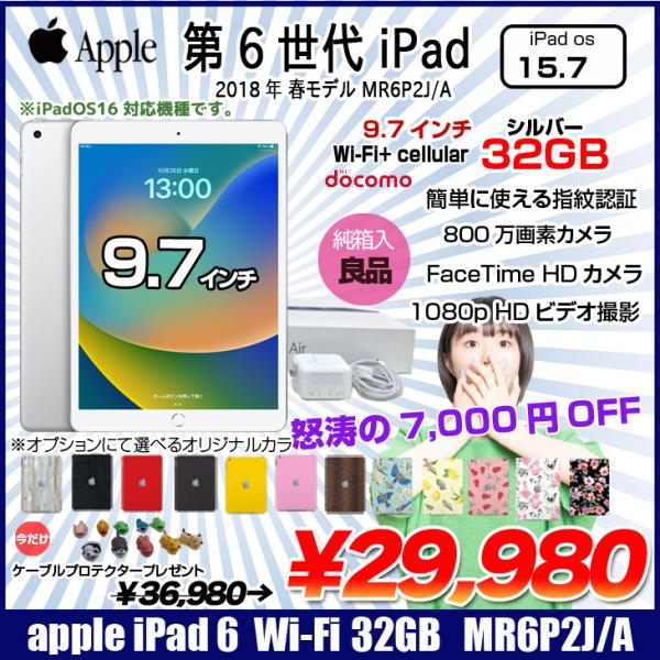 【中古iPad】Apple iPad 第6世代 MR6P2J/A Docomo Wi-Fi+ Cellular 2018 32GB A1954 選べるオリジナルカラー[ A10 32GB(SSD) 9.7インチ iPadOS 15.7 シルバー ] :アウトレット