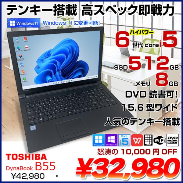 【中古パソコン 今だけBTマウス付】東芝 dynabook B55 中古 ノート Office Win10 第6世代[Core i5 6200U メモリ8GB SSD512GB マルチ 無線 テンキー 15.6型] :良品