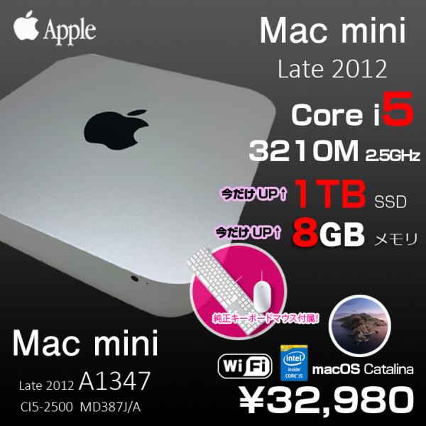 【中古パソコン 今だけ!SSDとメモリ倍増中↑】【中古パソコン 中古】Apple Mac mini MD387J/A Late 2012 A1347 小型デスクトップ MacOS Catalina [Corei5 3210U 2.5GHz SSD1TB メモリ8GB 純正キー・マウス 無線 BT OS10.15.7]:良品