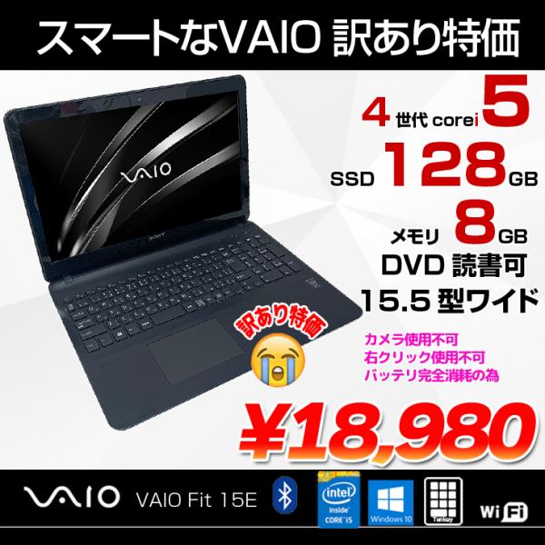 【中古パソコン】SONY VAIO Fit SVF1531SGJ 中古 ノート Office Win10 第4世代 [Core i5 4200U メモリ8GB SSD128GB マルチ 無線 テンキー 15.5型] :訳あり品