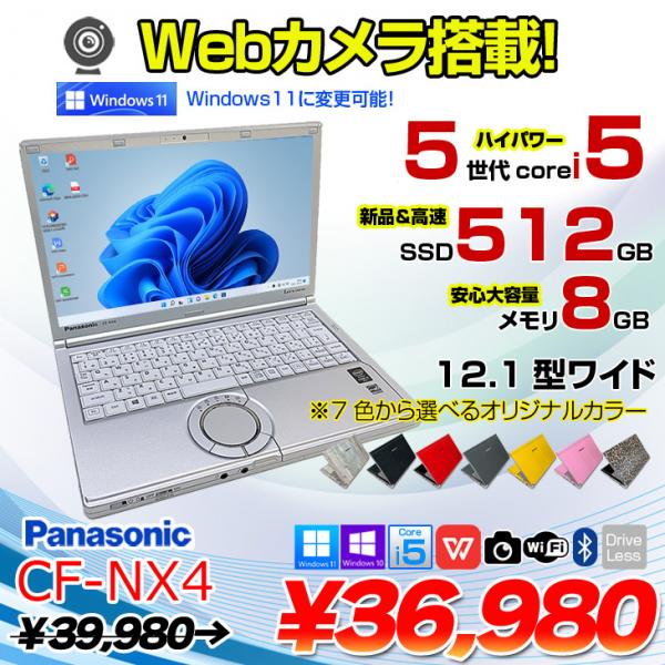 【中古パソコン】Panasonic CF-NX4 選べるオリジナルカラー 中古 ノート Office Win10 第5世代 [core i5 5300U 2.3GHz 8G SSD512GB カメラ 無線 BT 12.1型 ] :アウトレット