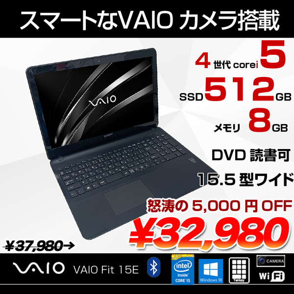 【中古パソコン】SONY VAIO Fit 中古 ノート Office Win10 SVF1531SGJ テンキー カメラ 第4世代 [Corei5 4200U 8GB SSD512GB 無線 マルチ BT] :アウトレット