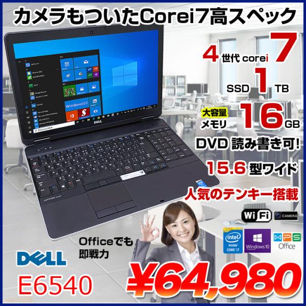 【中古パソコン】DELL Latitude E6540 中古 ノート Office Win10[Core i7 4810MQ メモリ16GB SSD1TB マルチ 無線 テンキー カメラ 15.6型 ] :良品
