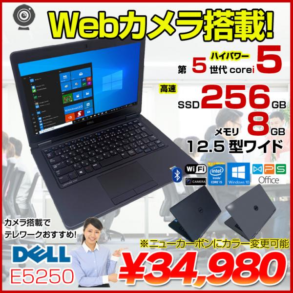 【中古パソコン】DELL Latitude E5250 中古 ノート 選べるカラー Office Win10 第5世代[Core i5 5300U メモリ8GB SSD256GB 無線 カメラ 12.5型 ] :良品
