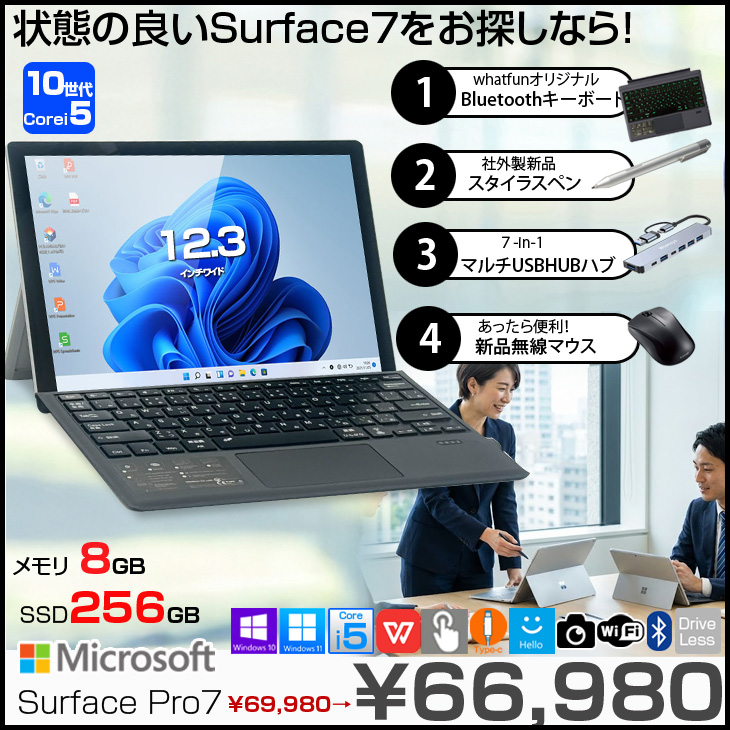Microsoft Surface Pro7 中古 タブレット カラー Office 選べるOS 7in1ハブ+新品BTキー+ペン+マウス付 [core i5 1035G4 8GB 256GB カメラ 無線 12.3]:良品