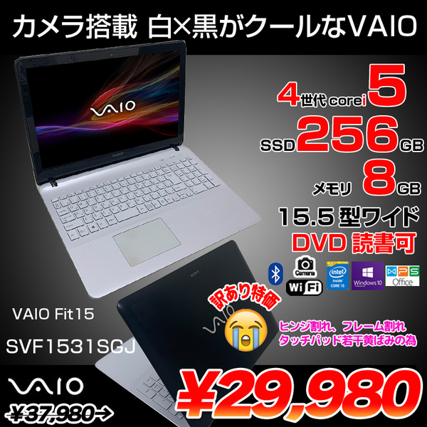 【中古パソコン】SONY VAIO Fit SVF1531SGJ 中古 ノート Office Win10 第4世代 [Core i5 4200U メモリ8GB SSD256GB マルチ 無線 テンキー カメラ 15.5型] :訳あり