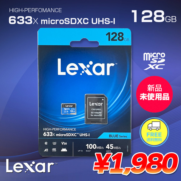 【パケット送料無料】Lexar 128GB マイクロSDXCカード microSDXC 633x Read100MB Write45MB A1 U3 V30 4K UltraHD C10 アダプター付 新品未使用