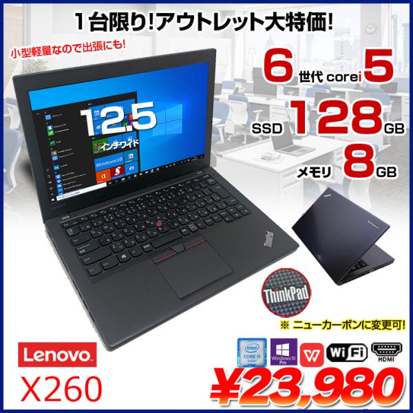 【中古パソコン】lenovo X260 中古 ノート選べるカラー Office Win10 第六世代 [core i5 6300U 2.4GHz 8GB SSD128GB 無線 12.5型 ] :アウトレット