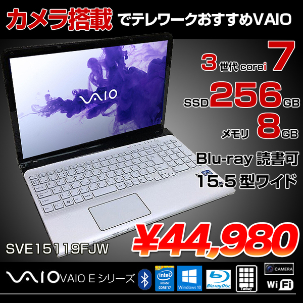 【中古パソコン】SONY VAIO E SVE15119FJW 中古 ノート Office Win10 Home 第3世代[Core i7 3612Q メモリ8GB SSD256GB Blu-ray 無線 テンキー カメラ 15.5型 ] :良品