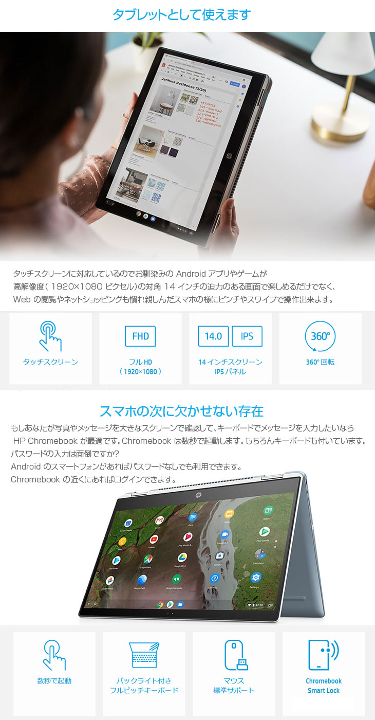 HP Chromebook 14-DA0008TU 8EC11PA#ABJ 保証書付未使用 Chrome OS [Corei3 8130U メモリ8GB eMMC64GB 無線 BT 14型 ] :超美品
