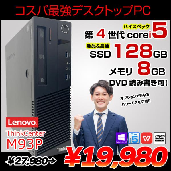 【中古パソコン】Lenovo ThinkCentre M93p 中古 デスクトップ Office Win10 第4世代[Core i5 4570 メモリ8GB SSD128GB マルチ]