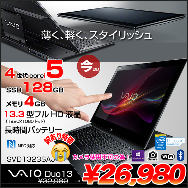 【中古パソコン】SONY VAIO Duo13 SVD1323SAJ 中古 ノート Office Win10 第4世代 スライダーハイブリッド [Core i5 4200U 4GB SSD128GB 無線 13.3型] :訳あり