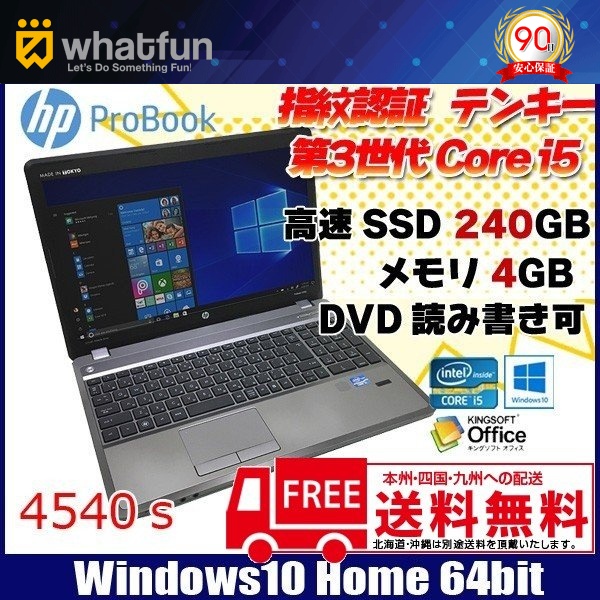 【中古パソコン】 HP 4540s 中古 ノートパソコン Office Win10 新品SSD テンキー [core i5 3210M 2.5GHz 4GB 高速SSD240GB DVD テンキー 15.6型 A4 ] :アウトレット