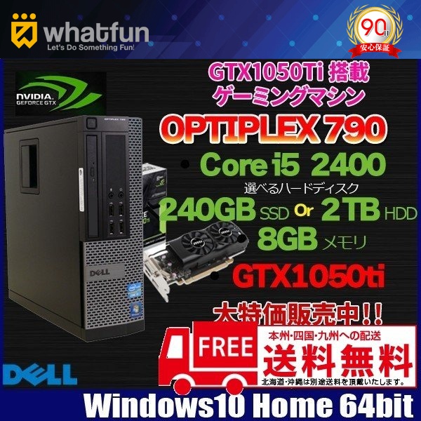 【中古パソコン】DELL 790 ゲーミングパソコン GTX1050Ti搭載 Windows10 [corei5 2400 3.1GHz メモリ8G HDD2TB or SSD240GB マルチ]キーボード・マウス付:良品