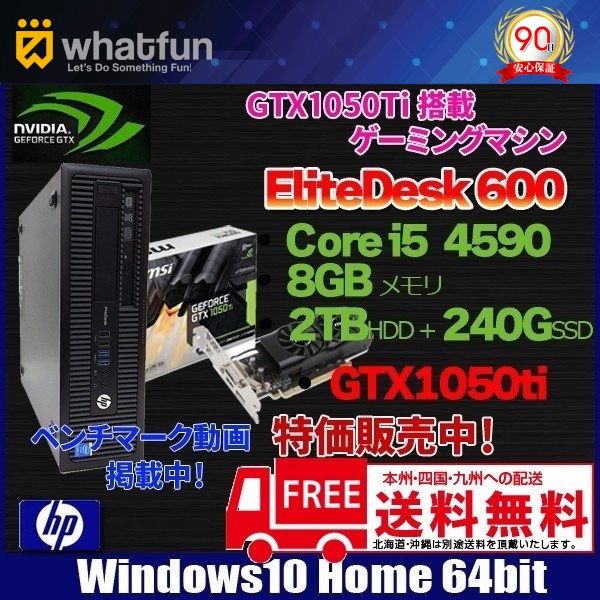 【中古パソコン】HP EliteDesk600 ハイブリッド ゲーミングパソコン GTX1050Ti搭載 Windows10 第4世代 [core i5 4570 3.2GHz メモリ8G HDD2TB+SSD240GB DVDマルチ ]