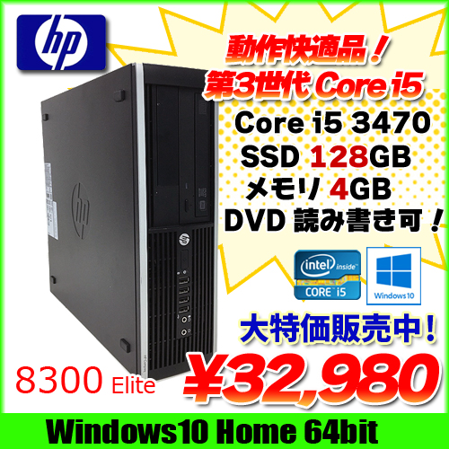 【中古パソコン】HP Compaq 8300 SFF 中古 デスクトップパソコン Win10 Home [ core i5 3470 3.2GHz メモリ4G SSD128GB DVDマルチ]DtoD領域有