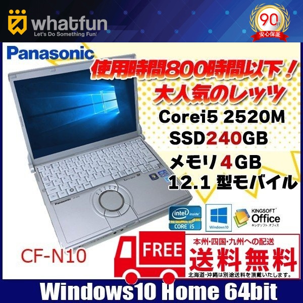 【中古パソコン】Panasonic CF-N10 使用800時間以下の美品レッツノート 中古 ノート Office Win10 新品SSD [core i5 2520M メモリ4G SSD240G 無線 12.1 ] :美品