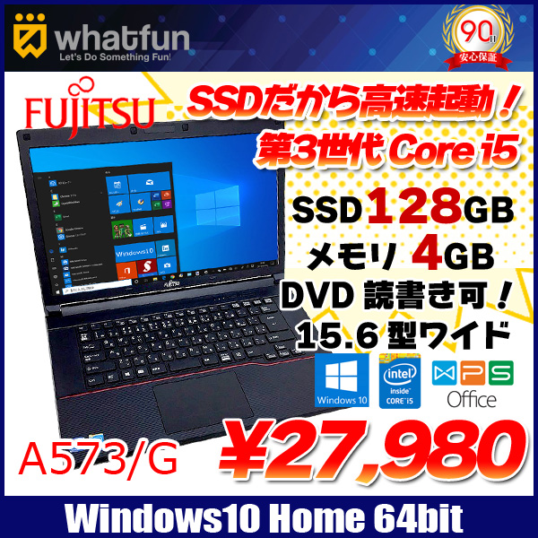【中古パソコン】 富士通 A573/G 中古 ノートパソコン Office Win10 高速SSD塔載 第3世代 [corei5 3340M 2.7GHz 4G SSD128GB マルチ 無線 15.6型 ] :良品