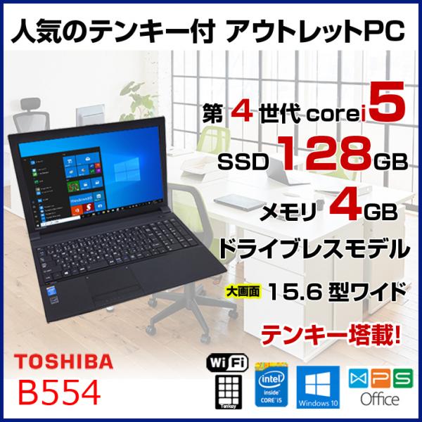 【中古パソコン】東芝 B554/K 中古 ノート Office Win10 or 8選択可 第4世代高速SSD塔載 テンキー [core i5 4300M 2.6GHz メモリ4G SSD128GB マルチ 15.6型 ] :アウトレット