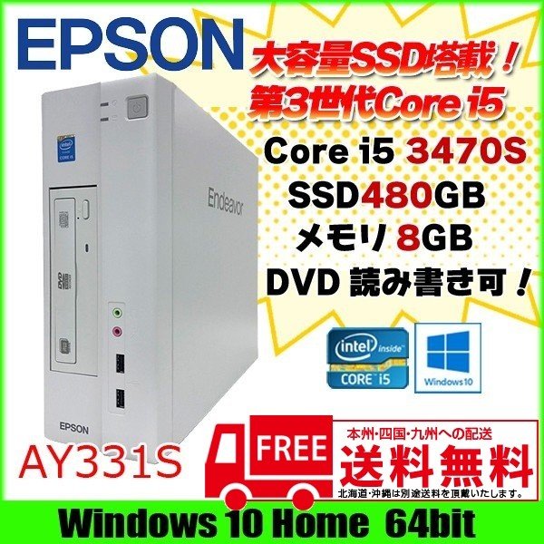 EPSON Endeavor AY331S 大容量480GBSSD塔載 Office Win10 第3世代 [corei5 3470s 2.9GHz8G SSD480GB マルチ]
