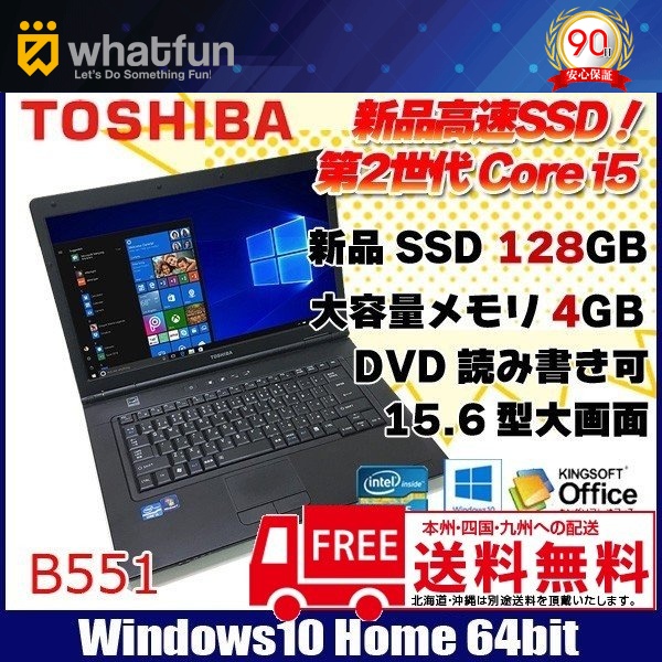 【中古パソコン】東芝 B551/E 中古 ノートパソコン Office Win10 Home 第2世代 [core i5 2450M 2.5GHz 4G SSD128GBマルチ 無線 15.6型 ] :良品