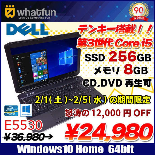 【中古パソコン】DELL E5530 ノートパソコン Office Win10 Home 第3世代 テンキー [core i5 3210M 2.5GHz 大容量8Gメモリ SSD256GB 無線 ROM 15.6型 A4] :アウトレット