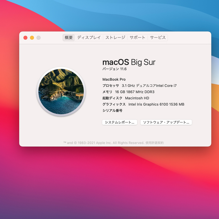 【中古パソコン】Apple Macbook Pro MF841J/A A1502 Early2015 USkey [Core i7-5557U 3.1GHz 16GB SSD1TB 無線 BT13.3インチ macOS BigSur 11.6] :美品