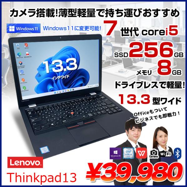 【中古パソコン】Lenovo Thinkpad13 中古 ノート Office Win10 or Win11 第7世代 [Core i5 7200U メモリ8GB SSD256GB 無線 BT カメラ HDMI 13.3型] :良品