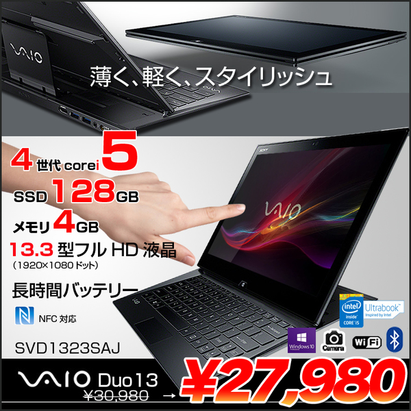 【中古パソコン】SONY VAIO Duo13 SVD1323SAJ 中古 ノート Office Win10 第4世代 スライダーハイブリッド [Core i5 4200U 4GB SSD128GB 無線 カメラ 13.3型] :アウトレット