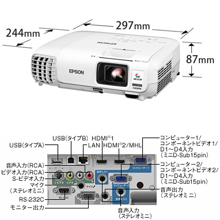 【使用時間600h以下】EPSON 液晶プロジェクター EB-950W 3000lm WXGA 3LCD方式 学校 ビジネスにおすすめ 便利なソフトケース付:良品