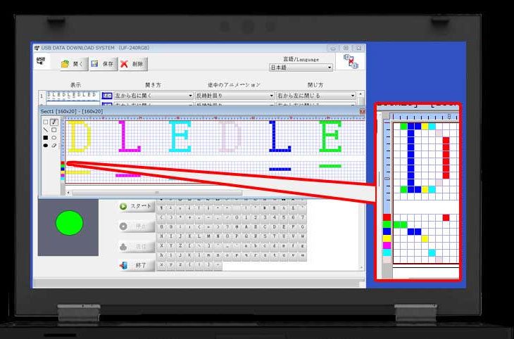 AREA エアリア ULELFAN-BK3 メッセージforファン 好きな文字や絵柄を記憶して表示できる USBファン 扇風機 USB LED 日本語 英語 ひらがな カタカナ 絵柄