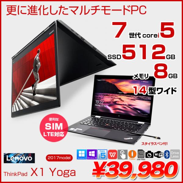 【中古パソコン】Lenovo ThinkPad X1Yoga2017 2nd Gen 中古 ノート Office Win10 or Win11 第7世代 360度回転 モードPC 14インチワイド /WQHD IPS液晶 (2560x1440) [Core i5 7200U メモリ8GB SSD512GB 無線 LTE カメラ 指紋認証 14型]:良品