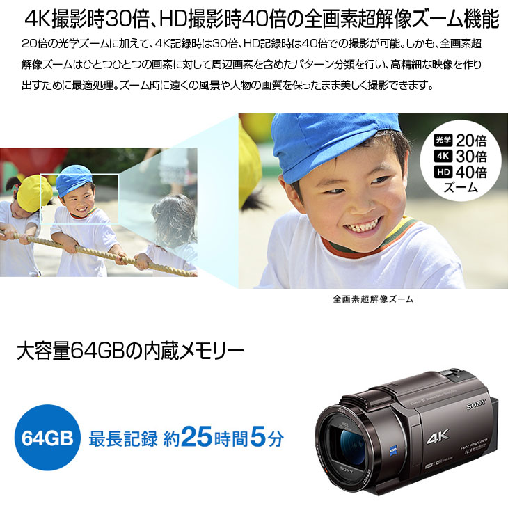 SONUY HANDYCAM FDR-AX40 デジタル4Kビデオカメラレコーダー1660万画素64GBメモリFHD4K箱付き:美品