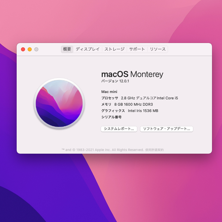 【中古パソコン】Apple Mac mini MGEN2J/A Late 2014 A1347 小型デスクトップ MacOS Monterey [Corei5 4278U 1TB(Fusion Drive) 8GB 純正キー・マウス 無線 BT OS12.0.1]:良品