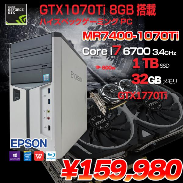 EPSON Endeavor MR7400 eスポーツ GTX1070Ti 搭載 ゲーミング 中古 デスク Office Win10 第6世代[Core i7 6700 メモリ32GB SSD1TB Blu-ray 600W ]:アウトレット