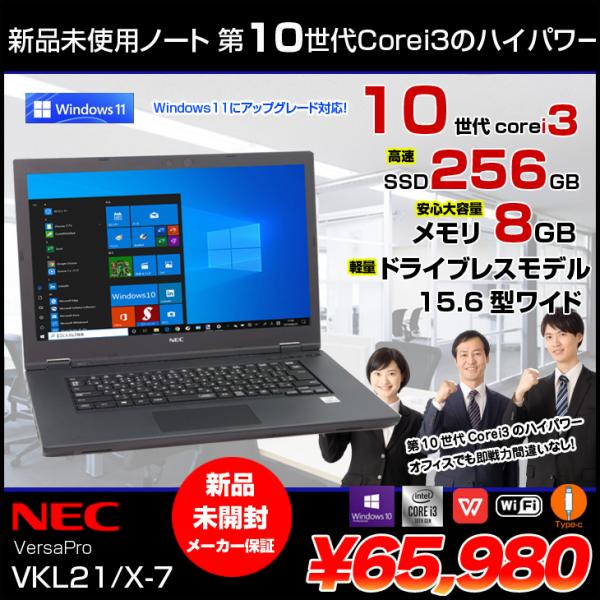 【新品未開封 】NEC VersaPro VKL21/X-7ノート Win10Pro Win11にUP可能 第10世代 メーカー保証 [Corei3 10110U 8GB SSD256GB 無線 15.6型 ]:新品