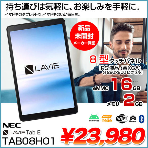 【新品パソコン】NEC LaVie Tab E NEC PC-TAB08H01 新品 未開封 メーカー保証 8インチタブレット IPSタッチ液晶[MediaTek Helio A22 Android9.0 2GB 16GB 無線 カメラ BT]